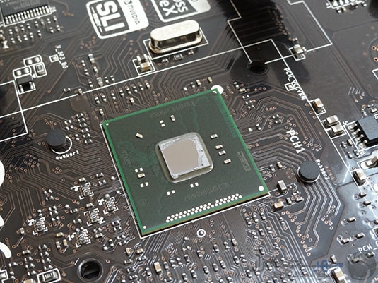 در تصویر بالا نیز مهم ترین چیپست این مادربرد یعنی PCH Z87 را ملاحضه می کنید. این چیپست که دارای ابعاد 23mm x 22mm می باشد، با فناوری 32nm ساخته شده است و دارای حداکثر TDP حدودا 4.1W می باشد.
