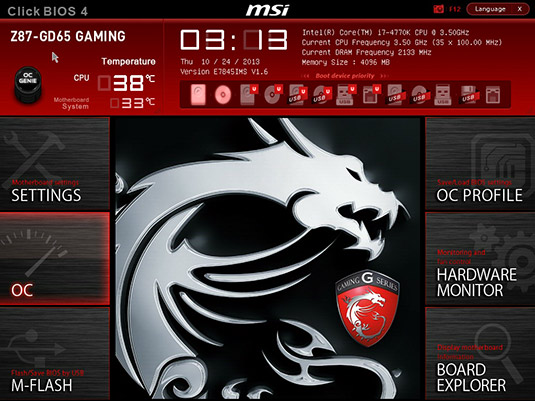 همانطور که اطلاع دارید کمپانی MSI از نام تجاری CLICK BIOS برای محیط کاربری UEFI مادربردهای نسل جدید خود استفاده می کند. در جدیدترین نسل این UEFI که CLICK BIOS 4 نام دارد تا حدودی رنگ و لعاب این محیط کاربری با توجه به رنگ های موجود در لوگو "ارتش اژدها" از آبی و مشکی به قرمز و مشکی تغییر کرده است. همچنین چند قابلیت جدید به آن اضافه شده و عملکرد موس نیز در آن روان تر شده ولی کلیات اصلی آن همانند نسل های قبل ثابت مانده است.
