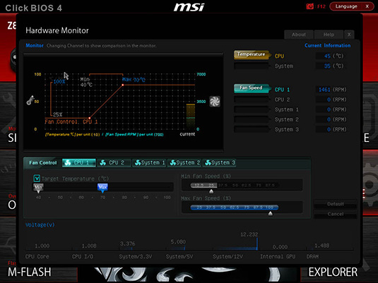 از مهم ترین قابلیت های جدید CLICK BIOS 4 ، مانیتورینگ گرافیکی جدید تحت عنوان HARDWARE MONITOR و Board Explorer می باشد.