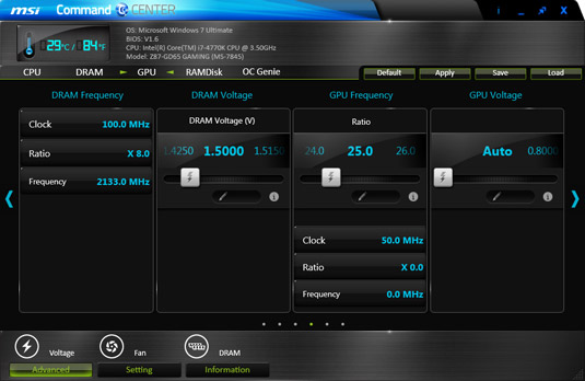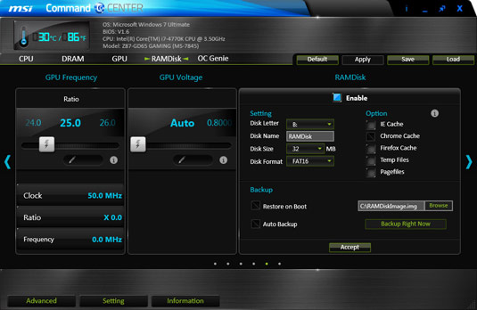 در آخرین تب این نرم افزار نیز بار دیگر قابلیت فعال سازی OC GENIE به صورت نرم افزاری و تحت ویندوز فراهم شده است.