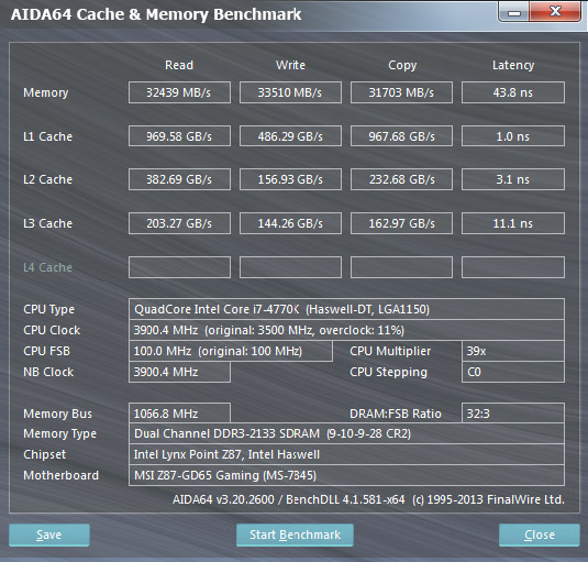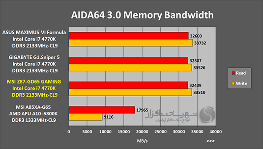 تست پهنای باند و Latency حافظه توسط نرم افزار AIDA64 3.0