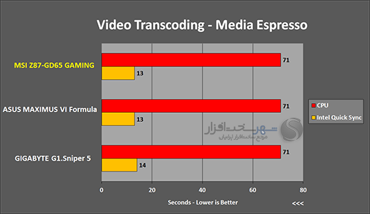 در این بخش توسط دو نرم افزار های CyberLink MediaEspresso Media Convertor 6.5 و x264 HD Benchmark 4.0 در همه زوایا، کارایی این پلتفرم را محک زدیم.
