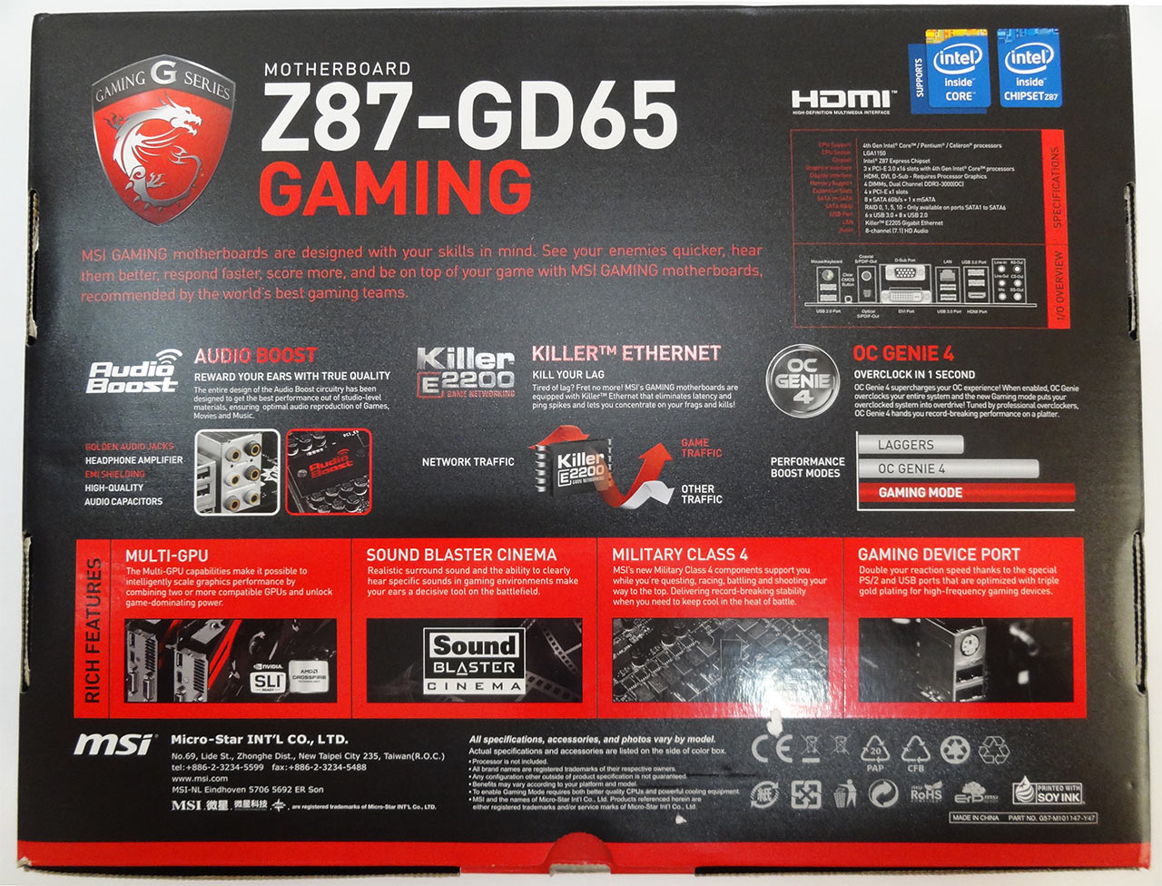MSI Z87-GD65 GAMING شاید امکانات جانبی کمتری در مقایسه با مدل های رده بالا و گران قیمت موجود در بازار داشته باشد ولی قابلیت هایی نظیر پشتیبانی نا محدود از تکنولوژی VIRTU MVP 2.0 ، سیستم صوتی مدرن Audio BOOST ، چیپ شبکه قدرتمند Killer E2200 ، امکانات جانبی مدرن و بروز تعبیه شده بر روی PCB جهت سهولت کار اورکلاکرهای حرفه ای و از همه مهمتر قیمت بسیار مناسب آن ، این مدل را به یکی از ارزشمند ترین مادربردهای گیمینگ مبتنی بر چیپست PCH Z87 موجود در بازار تبدیل می کند.