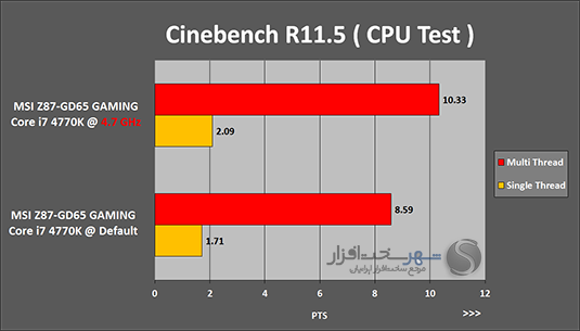 همچنین در نمودارهای زیر می توانید عملکرد پردازنده Intel Core i7 4770K را در فرکانس فوق ملاحضه کنید :