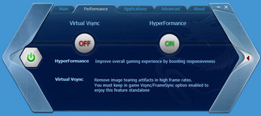 همانند نسخه قبل دو قابلیت HyperFormance و Virtual Vsync برای آن در نظر گرفته شده که به صورت پیش فرض فقط قسمت HyperFormance آن فعال است. ما نیز در تست های کارایی به همین ترتیب تست گرفتیم.