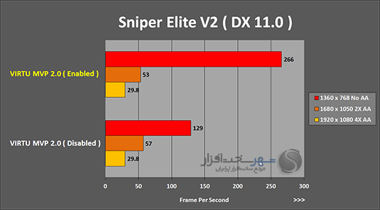 همانطور که ملاحضه می کنید عملکرد فوق العاده تکنولوژی VIRTU MVP 2.0 در تست های فوق ستودنیست. اما باید این نکته را مد نظر داشته باشید که قبل از فعال سازی قابلیت های این نرم افزار ، از پشتیبانی و سازگاری کامل نرم افزار VIRTU MVP 2.0 با گیم یا نرم افزار مورد نظرتان اطمینان حاصل نمایید. چون در غیر این صورت نه تنها افزایش کارایی را تجربه نخواهید کرد، بلکه ممکن است عملکرد کلی نیز تا حدودی کاهش یابد.