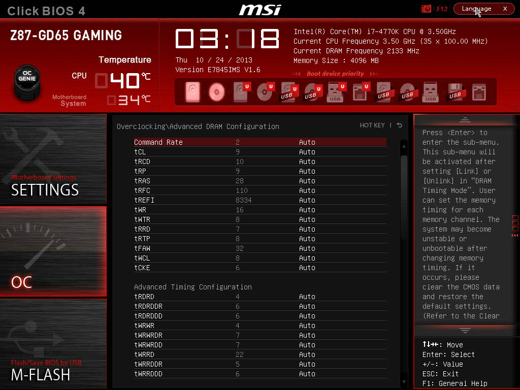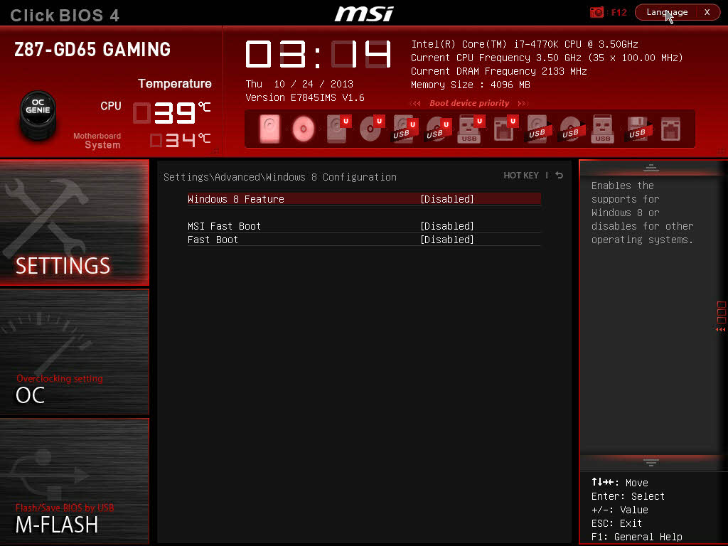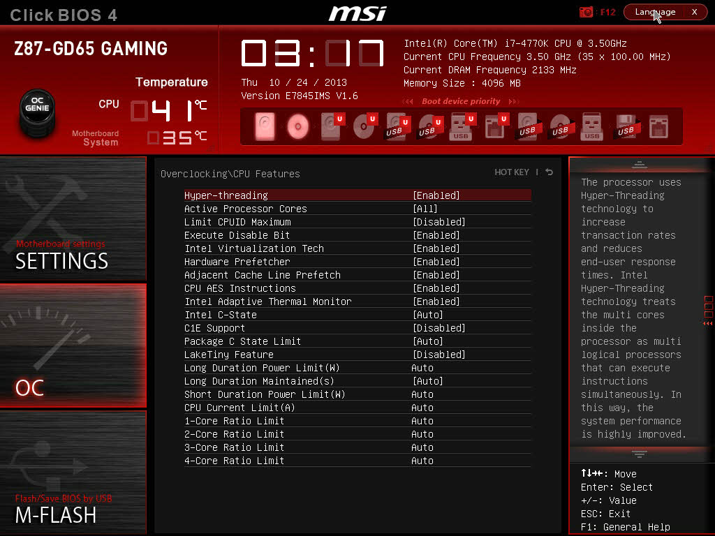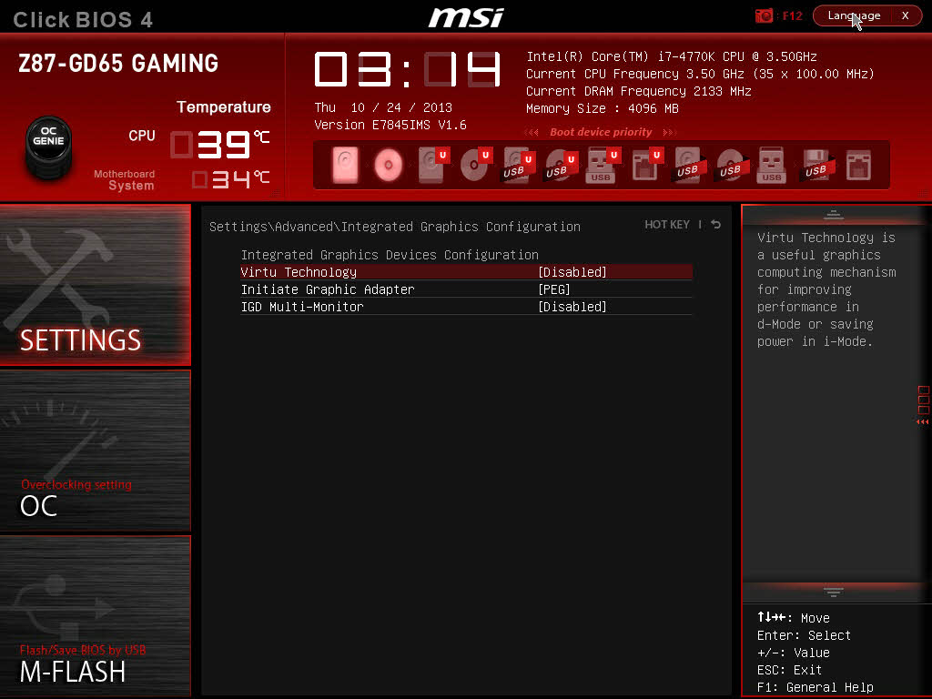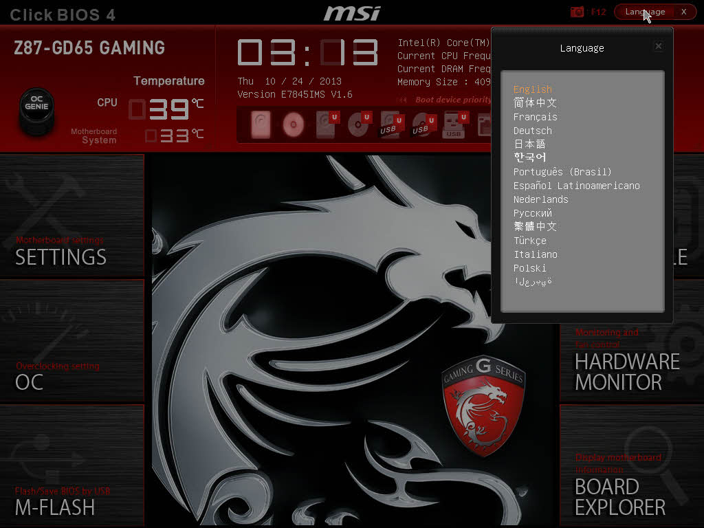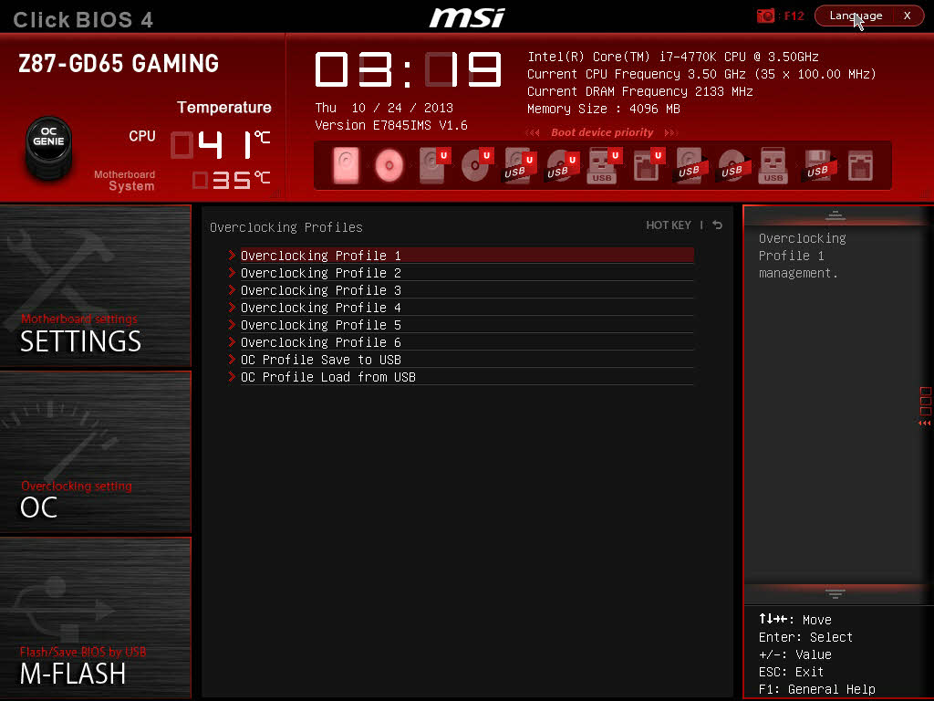 همچنین مهم ترین مشخصات فنی سیستم به همراه مانیتورینک حرارت پردازنده و چیپست PCH Z87 نیز در بالای صفحه Bios درج شده اند.