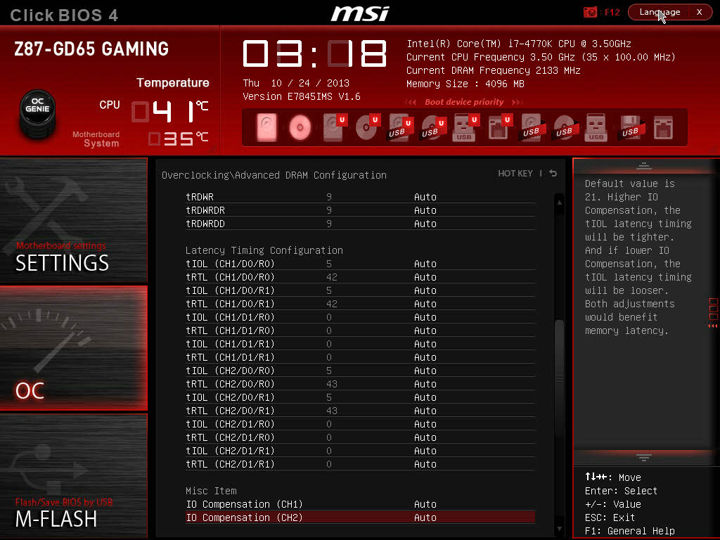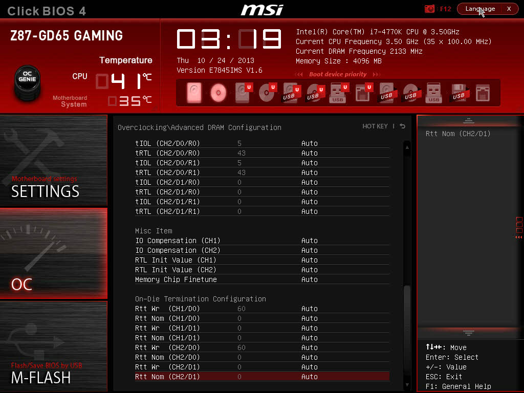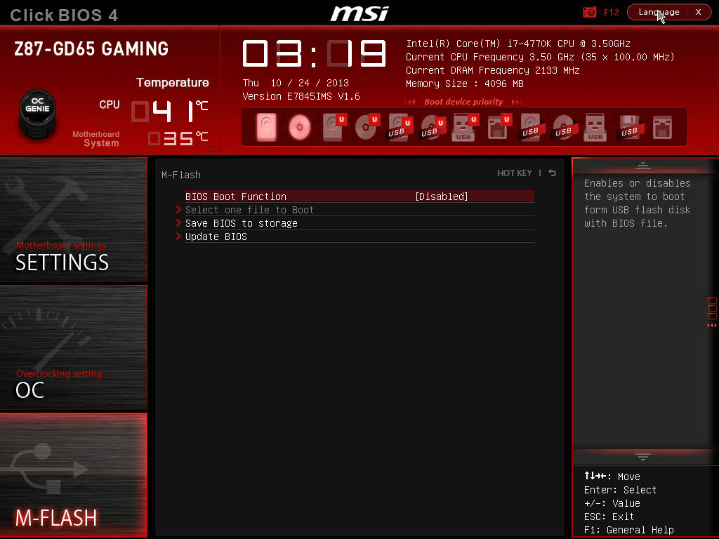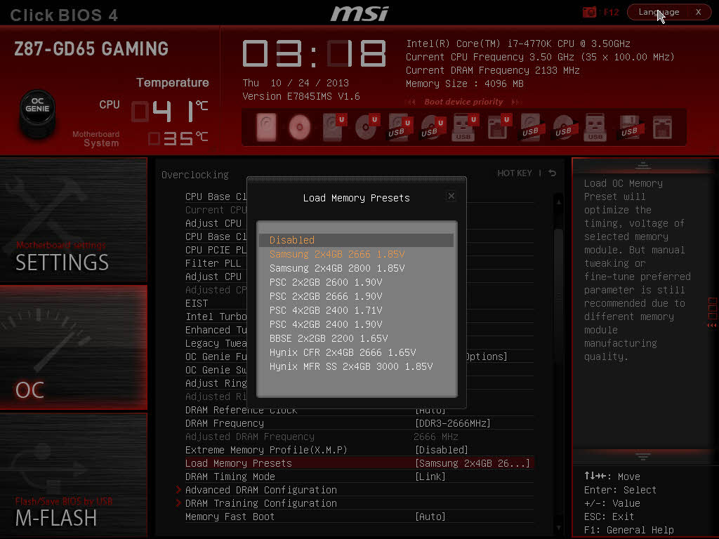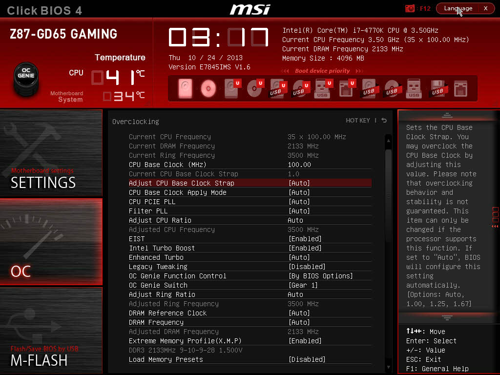 همچنین مهم ترین مشخصات فنی سیستم به همراه مانیتورینک حرارت پردازنده و چیپست PCH Z87 نیز در بالای صفحه Bios درج شده اند.