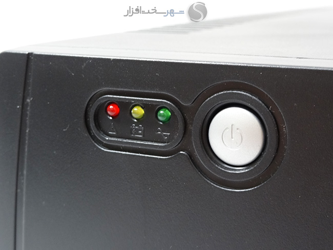 برای مثال روشن بودن LED سبز رنگ، متصل بودن برق شهر و عملکرد عادی دستگاه را گزارش میکند. LED زرد رنگ در حین قطع برق شهر و در زمانی که انرژی مورد نیاز بارها از باتری تأمین میشود روشن میشود. البته در این وضعیت بازر دستگاه نیز هر 10 ثانیه بوق میزند. همین LED در حین اتمام شارژ باتری به حالت چشمک زن رفته بازر نیز هر 1 ثانیه هشدار میدهد. دیود نورانی قرمز نیز بروز خطا در UPS را گزارش میکند. این حالت که با هشدار ممتد بوق بازر نیز همراه است ممکن است در اثر معیوب شدن باتری و یا وجود اضافه بار و عدم توانایی UPS در انتقال برق شهر به باتری رخ دهد. به بیانی دیگر هنگامی که این LED روشن باشد خروجیهای دستگاه فاقد ولتاژ میباشند.
