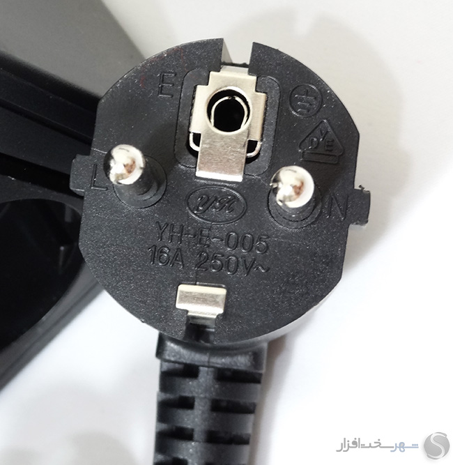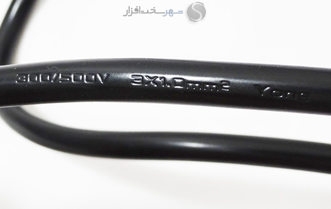 کابل 175 سانتی متری برق ورودی نیز مشکل از 3 رشته با قطر 1.0mm2برای سیمهای فاز، نول و ارت میباشد. کابلی که بسیار باکیفیت به نظر میرسد.