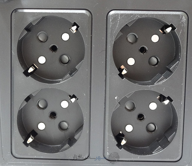 هر 4 پریز خروجی در نظر گرفته شده برای این UPS از نوع ارتدار با استاندارد CEE 7/3 اروپا و مجهز به شاتر یا محافظ جلوگیری از نفوذ اشیاء تیز به داخل دوشاخه میباشد. در واقع در پریزهای شاتر دار جفت شاخههای دوشاخهی ورودی باید همزمان وارد این نوع پریزها شوند. بدین شکل هرگونه جسم خارجی امکان ورود به این پریزها را نخواهد داشت.