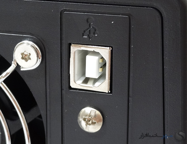 پورت USB تعبیه شده در این بخش نیز از نوع Type-B که معمولاً در پشت پرینترها نمونه آن را دیدهاید، است. همانطور که اشاره شد این پورت جهت اتصال این دستگاه به PC کاربرد دارد.