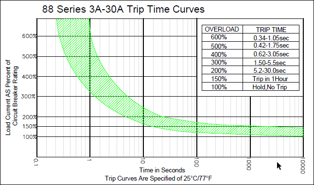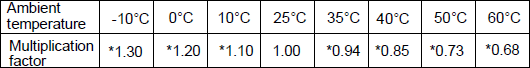 در جداول بالا پارامترهای Trip Time (سرعت واکنش مدارشکن برای قطع مدار در جریانهای بالاتر از مقدار نامی) و Multiplication Factor (ضریب حداکثر جریان قابل تحمل در دماهای مختلف محیط) را ملاحظه میکنید.