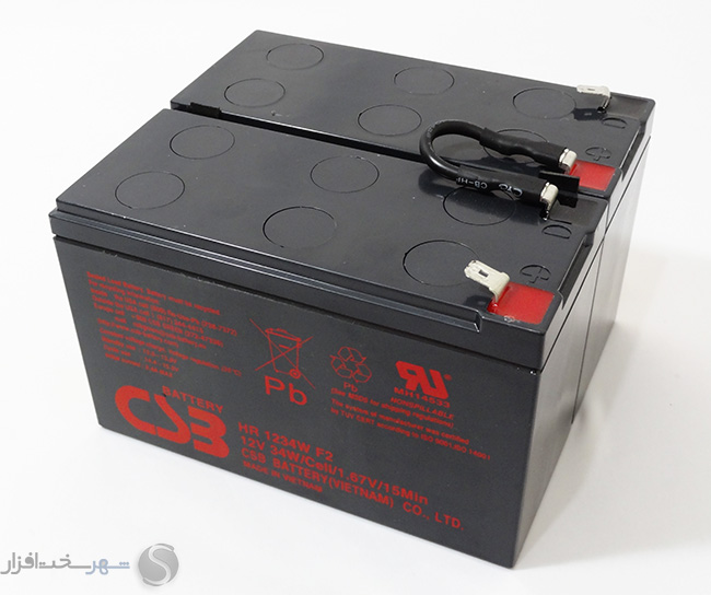 اما همانطور که اشاره شد این یو پی اس به دو باتری 9Ah سربی اسیدی پلمپ شده ساخت کمپانی باسابقه و معروف CSB Battery که از زیر مجموعههای کمپانی ژاپنی Hitachi Chemical Energy Technology محسوب میشود مجهز شده است. اسمبل این 2 باتری در کشور ویتنام انجام میشود ولی هر 6 سلول آنها ساخت ژاپن و با گواهی کمپانی هیتاچی ساخته شده است.
