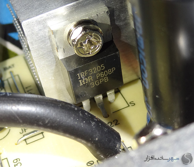 یکی از مهمترین کامپوننت ها در منابع تغذیه UPS سوئیچهای به کار رفته در بخش مدار اینورتر (مبدل جریان مستقیم به متناوب) است. در این دستگاه شاهد بهکارگیری یکی از پربازدهترین و مدرنترین سوئیچهای حال حاضر در این بخش هستیم. از جمله ویژگیهای کم نظیر پاورماسفت های HEXFET مدل IRF3205 ساخت کمپانی آمریکایی International Rectifier میتوان بهسرعت و بازدهی سوئیچ فوقالعاده بالا، تحمل حرارت حداکثر ℃175، جریان ID حداکثر 110A و مقاومت معادل سری بسیار ناچیز (8.0mΩ) اشاره کرد. لازم به ذکر است 8 عدد از این پاورماسفت ها در مدار اینورتر در حین قطع برق شهر وظیفه تبدیل جریان DC ذخیره شده در باتریها را به جریان متناوب شبه سینوسی بر عهده دارند.