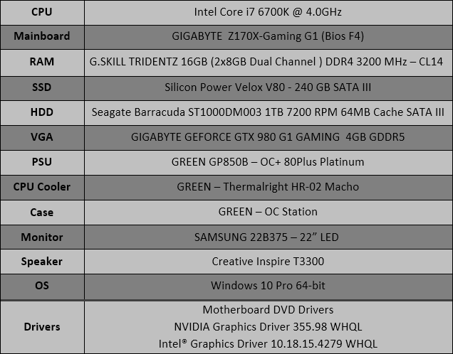 اما اجازه دهید قبل از هر چیز جدول مشخصات فنی ارائه شده توسط GREEN را برای این محصول بررسی کنیم.