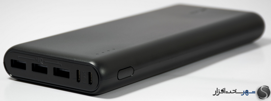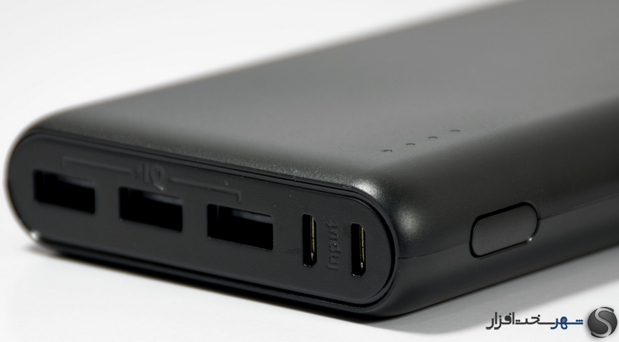 تمامی درگاههای ورودی و خروجی دستگاه در لبه جلویی آن تعبیه شدهاند. این پاور بانک دارای دو درگاه ورودی Micro USB برای شارژ کردن باتری داخلی است که در لبه سمت راست تعبیه شدهاند، احتمالاً میپرسید چرا دو درگاه؟