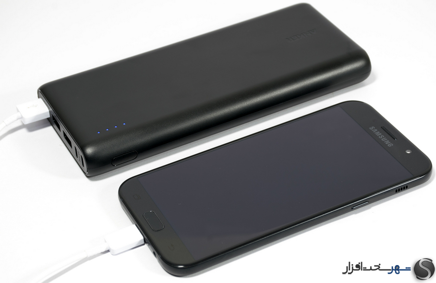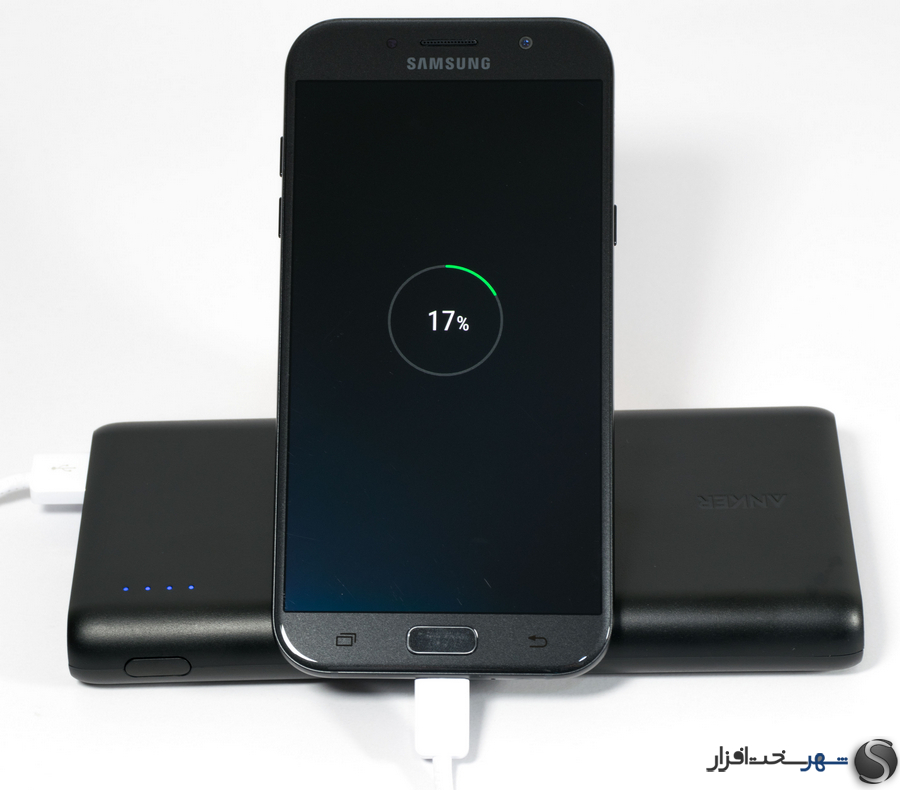 ما برای بررسی این پاور بانک سراغ گوشی Samsung Galaxy A7 (2017) رفتیم که دارای باتری داخلی با ظرفیت 3600 میلی آمپر ساعت است. این گوشی با شارژر اصلی به حدود "1:50 (یک ساعت و پنجاه دقیقه) زمان برای رسیدن از 10 درصد به 100 درصد نیاز دارد. هنگامی که ما آن را به درگاه های PowerIQ این پاور بانک وصل کردیم، زمان لازم برای شارژ شدن آن به شرح زیر بود: