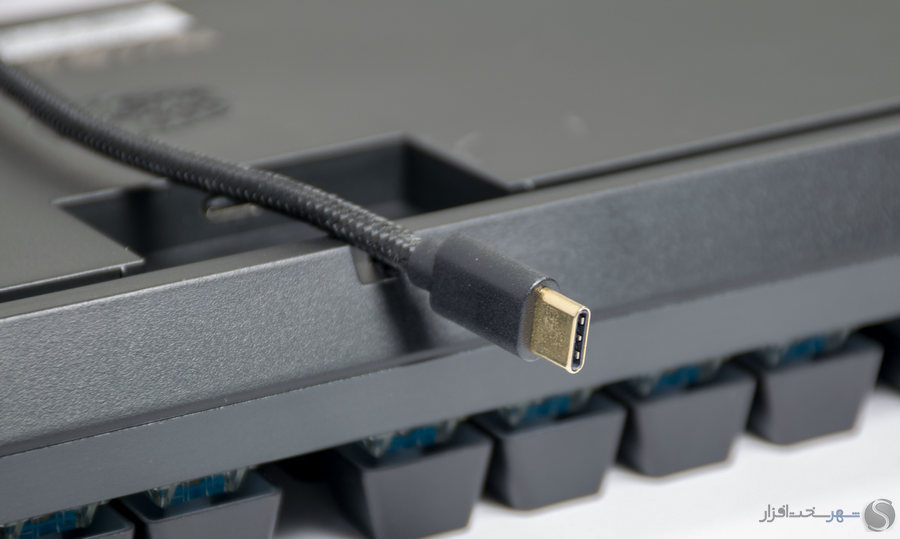 کانکتور Micro USB کیبورد در زیر آن تعبیه شده است. گردش آسان کابل و حمل پذیری ساده، از مزایای تبعیه کانکتور کابل در زیر دستگاه است. کانکتور سمت کیبورد از نوع C بوده و از هر دو جهت قابل وصل کردن است.