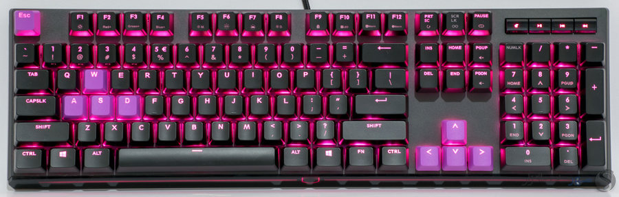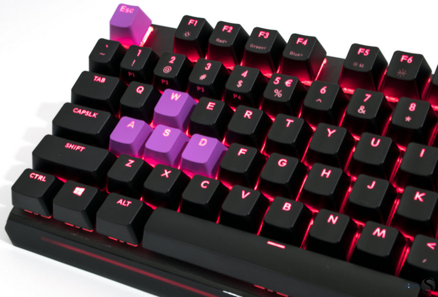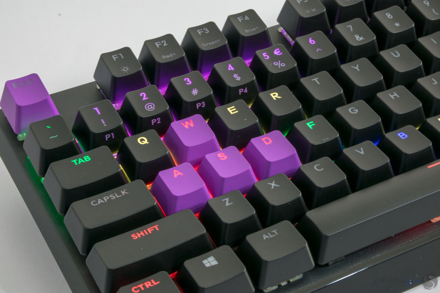 اما دومین آیتم جدید، 9 عدد keycap یا همان پوشش بالایی کلیدها به رنگ بنفش است. keycap های اختیاری در مجموع 9 عدد بوده و برای هر یک از کلیدهای ESC، A S D و کلیدهای جهت نما در دسترس است. برخلاف keycap های اصلی، گونه بنفش از طراحی ویژه ای بهره می برد که در آن نوشته به طور مجزا ساخته و ترکیب شده است.