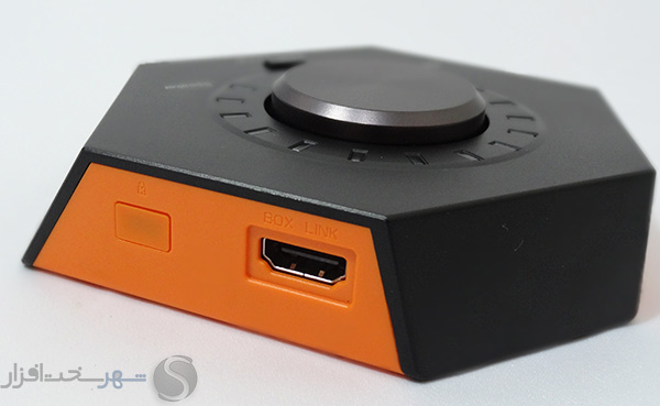 کانکتور رابط BOX LINK (جهت ارتباط کنترل باکس و کارت صدا) و قفل از نوع Kensington lock برای جلوگیری از سرقت این باکس نیز در طرف دیگر این آن تعبیه شده است.
