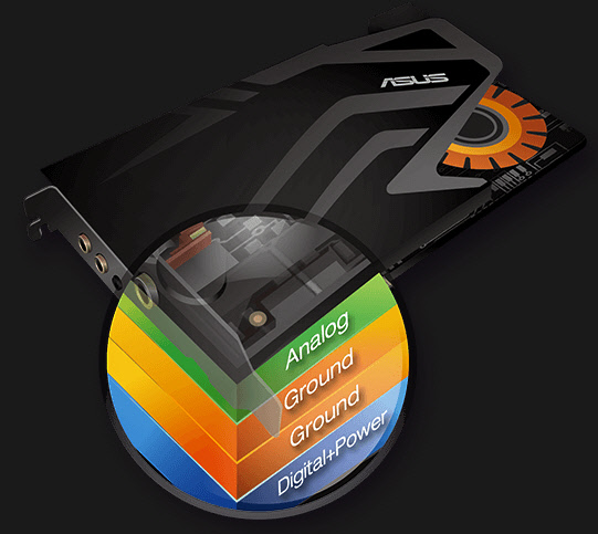 این ایزولاسیون حتی در PCB 4 لایه این کارت صدا نیز اعمال شده و لایه Wire های بخش آنالوگ، گراندها و بخش دیجیتال و پاور نیز کاملاً مجزا در نظر گرفته شده است