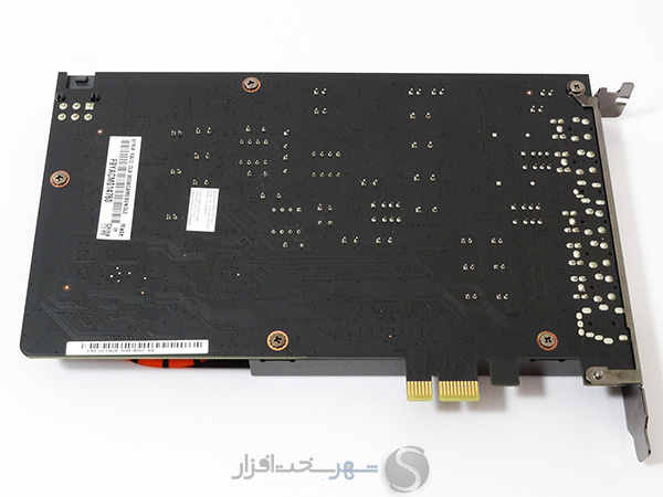 همانطور که ملاحظه میکنید محافظه فلزی EMI این مدل توسط 5 عدد پیچ چهارسو در پشت PCB بر روی آن بسته میشود. همچنین کاملاً مشخص است که هیچ یکی از قطعات و یا تراشههای این کارت صدا در پشت PCB تعبیه نشده است. در واقع تمامی کامپوننت های این مدل در پشت محافظ EMI و کاملاً محافظت شده در برابر امواج الکترومغناطیسی تعبیه شدهاند.