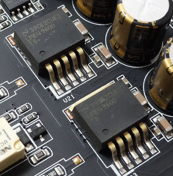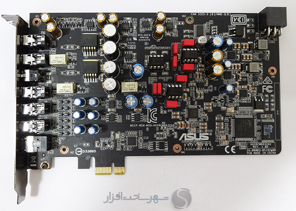 همانطور که در تصویر بالا ملاحظه میکنید عمده قطعات و تراشههای مرتبط با بخش آنالوگ صدا در نیمه سمت چپ و قطعات مرتبط با بخش دیجیتال و پاور در نیمه سمت راست و عمدتاً در بخش پایینی PCB تعبیه شدهاند. همچنین کمپانی ASUS با استفاده از رگولاتورهای مجزا از نوع (LDO (Low Drop Out در بخش پاور این مدل نشان داده که در طراحی این کارت صدا تمرکز زیادی بر روی پایداری ولتاژ ورودی و حذف نویزهای احتمالی ورودی از این راه داشته است.