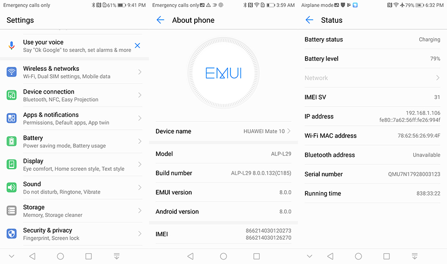 گلکسی ای 8 پلاس مجهز به نسخه 8.5 رابط کاربریExperience و میت 10 نیز مجهز به نسخه 8 رابط کاربری EMUI است. بدین ترتیب هر دو گوشی از لحاظ بروز بودن سیستم عامل و رابط کاربری در وضعیت بسیار قابل قبولی قرار دارند. سامسونگ و هواوی هر دو گزینههای متعددی برای شخصی سازی در اختیار کاربران قرار میدهند و شما میتوانید ظاهر هر دو گوشیرا مطابق سلیقه خود تغییر دهید.