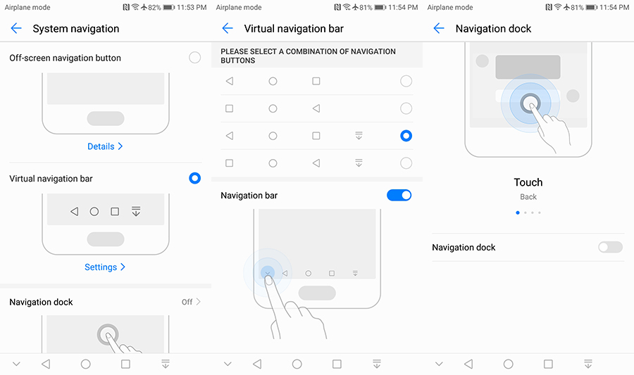 از دیگر نکات قابل توجه رابط کاربری میت 10 میتوان به امکان تغییر ترتیب کلیدهای پیمایشی، مخفی کردن این بخش و امکان کشیدن انگشت به سمت بالا برای دسترسی مجدد به آنها و امکان نمایش میزان دیتای مصرفی و فعالیت پسزمینه هر اپلیکیشن اشاره کرد.