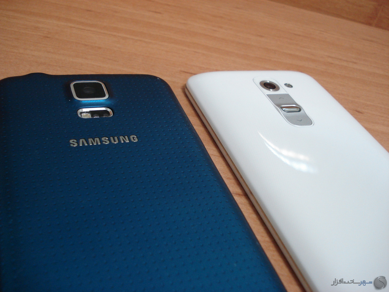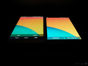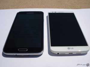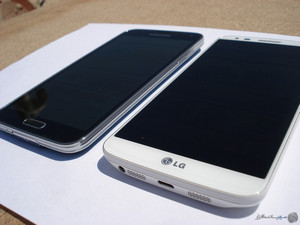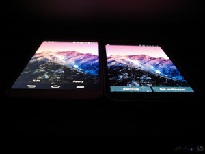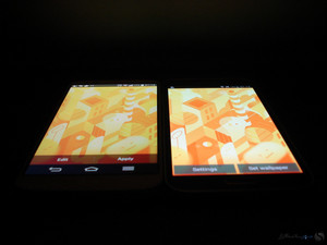 افزایش میزان روشنایی نمایشگر در حالت 100% از 404 نیت به 529 نیت برای یک پانل OLED که منبع نوری جداگانه همانند IPS ها ندارد بسیار عالیست. به همین دلیل است که نمایشگر گلکسی اس 5 علاوه بر خلوص بی نظیر رنگ مشکی می تواند رنگ سفید را حتی از ال جی جی 2 بهتر و سفیدتر نشان دهد. در عکسهای زیر گلکسی اس 5 در سمت راست و ال جی جی2 در سمت چپ قرار دارند.