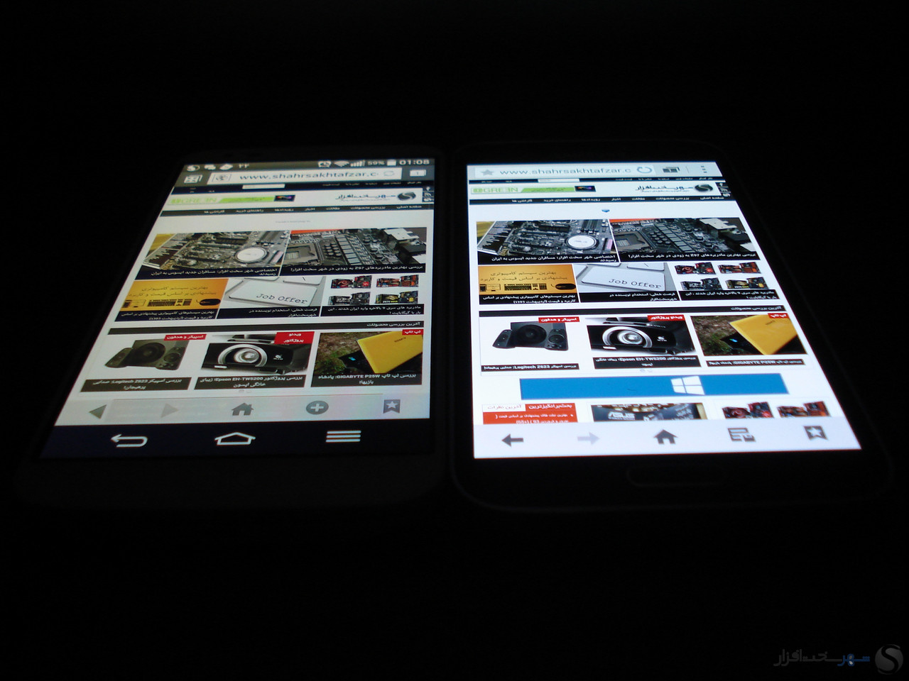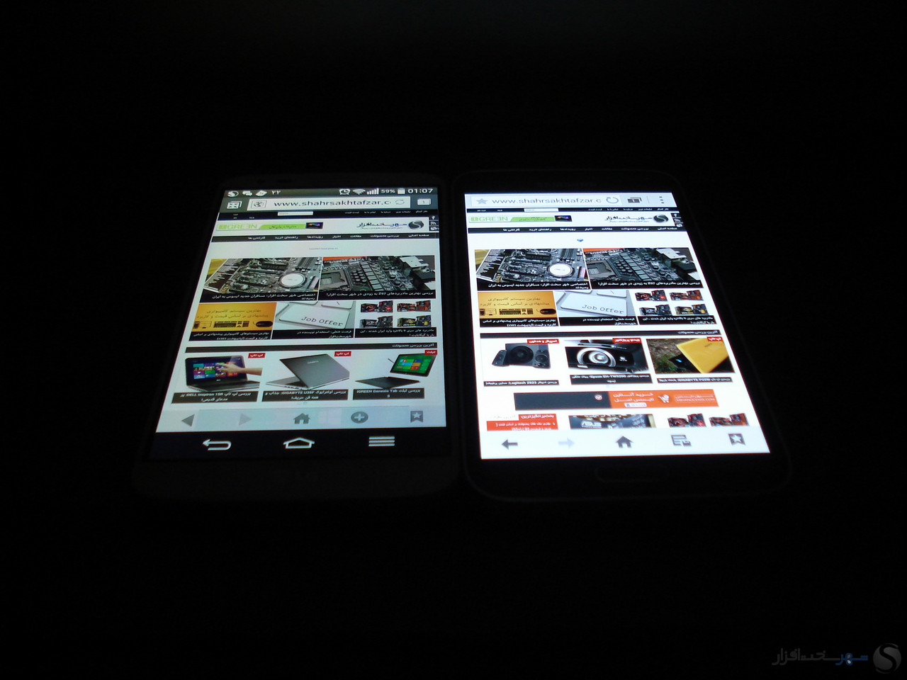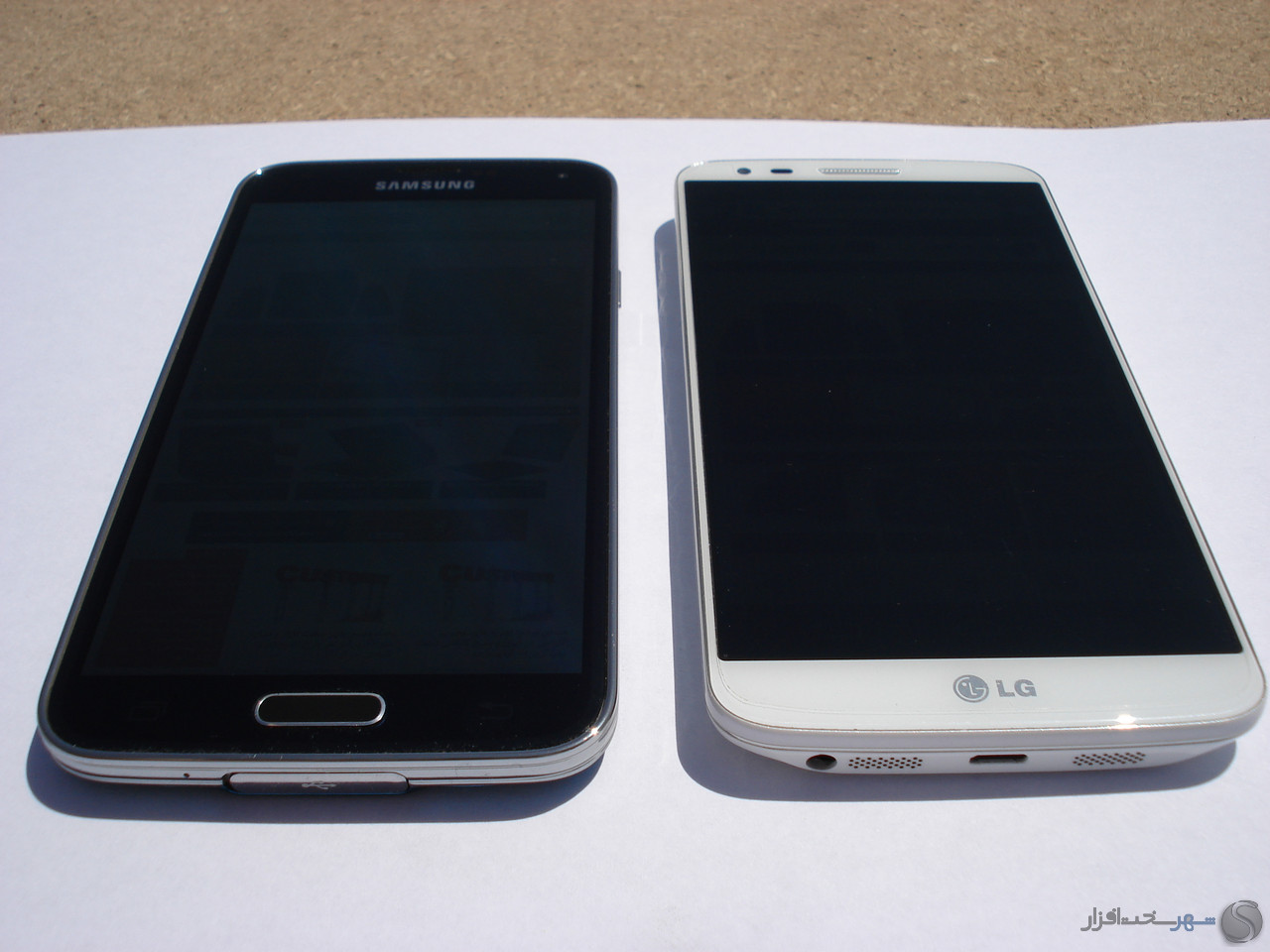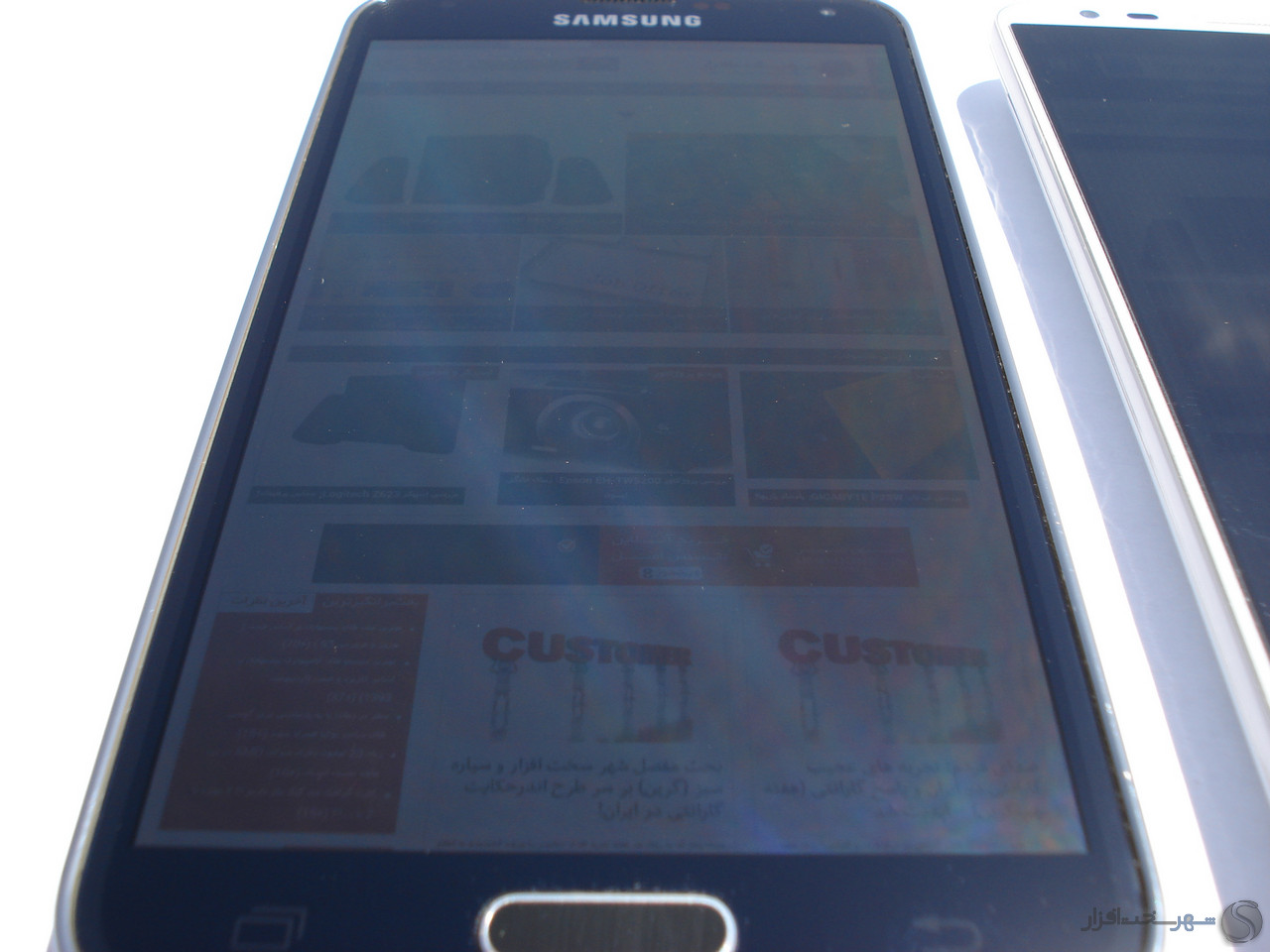 یکی دیگر از موارد بررسی مهم در مورد نمایشگر های موبایل بررسی آنها در زیر نور آفتاب است. گلکسی اس 5 همانطور که در تصاویر زیر مشاهده می کنید خوانایی خوبی را در زیر نور آفتاب دارد و می توانید بدون نگرانی بابت مشاهده کردن متون و منوها در زیر نور شدید هم به کار کردن با آن ادامه دهید. برای اثبات این موضوع ما گلکسی اس 5 را در کنار یکی از بهترین های بازار قرار داده ایم تا خود به این موضوع پی ببرید.