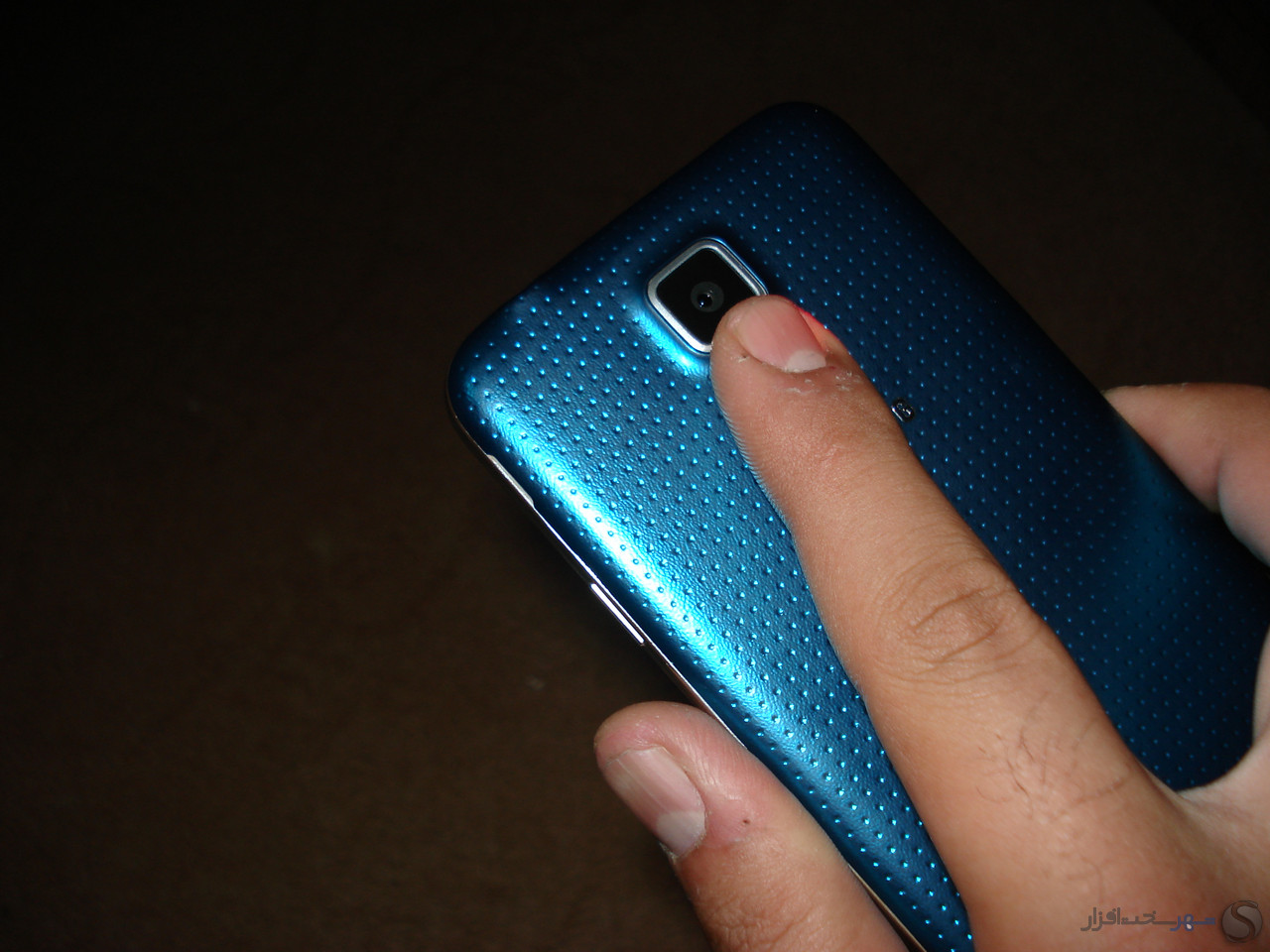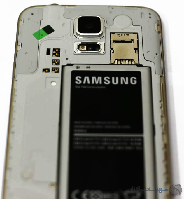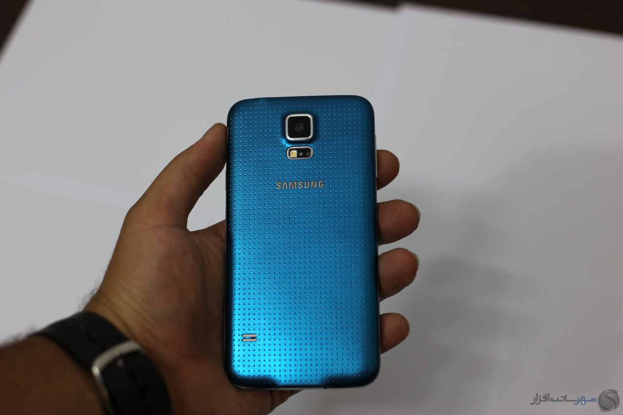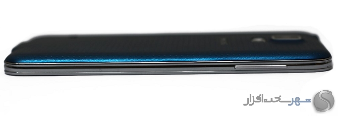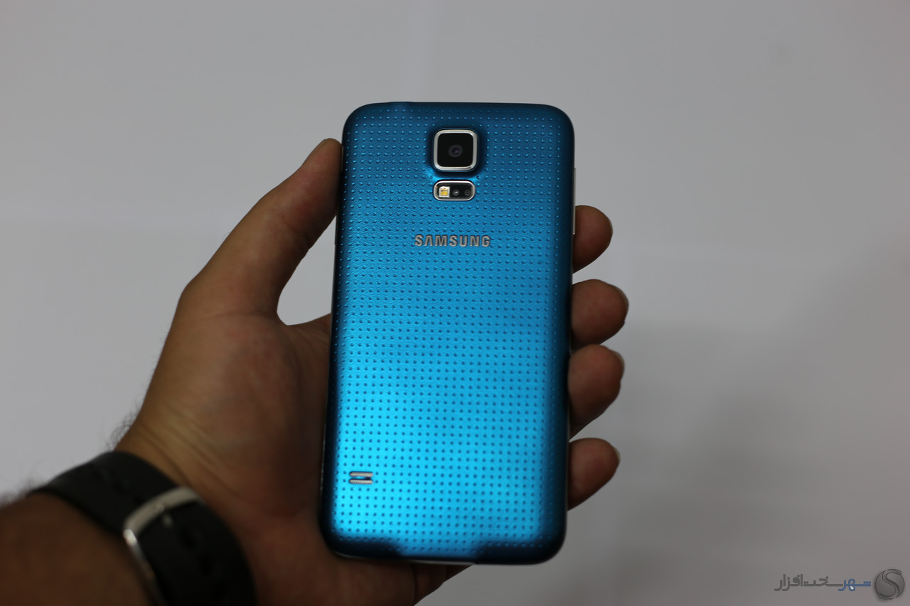 سامسونگ در طراحی نوت 3 به لطف پوشش چرم مانند قاب پشت توانست تا حدود زیادی از حجم نارضایتی ها را کاهش دهد و انتظار می رفت اینبار برای گلکسی اس 5 نیز همان روند را در پیش بگیرد اما برخلاف نوت 3 در این گوشی شاهد یک قاب پلاستیکی نرم با روکش ماتریسی از نقطه های ریز روبرو هستیم که ناخودآگاه ما را یاد قاب پشتی Nexus 7 سال 2012 می اندازد! باید اعتراف کنیم یکی از نقاط ضعفی که باعث دلسرد شدن خریداران می گردد همین قاب پشتی گلکسی اس 5 است که با زبان طراحی سامسونگ تاحدودی غریبه است و از زیبایی پشت گوشی کاسته است. اما برخلاف چیزی که به نظر می رسد این قاب می تواند تا حد بسیار زیادی از لیز خوردن گوشی کاسته و حس خوشایندی از در دست گرفتن آن به کاربر بدهد.