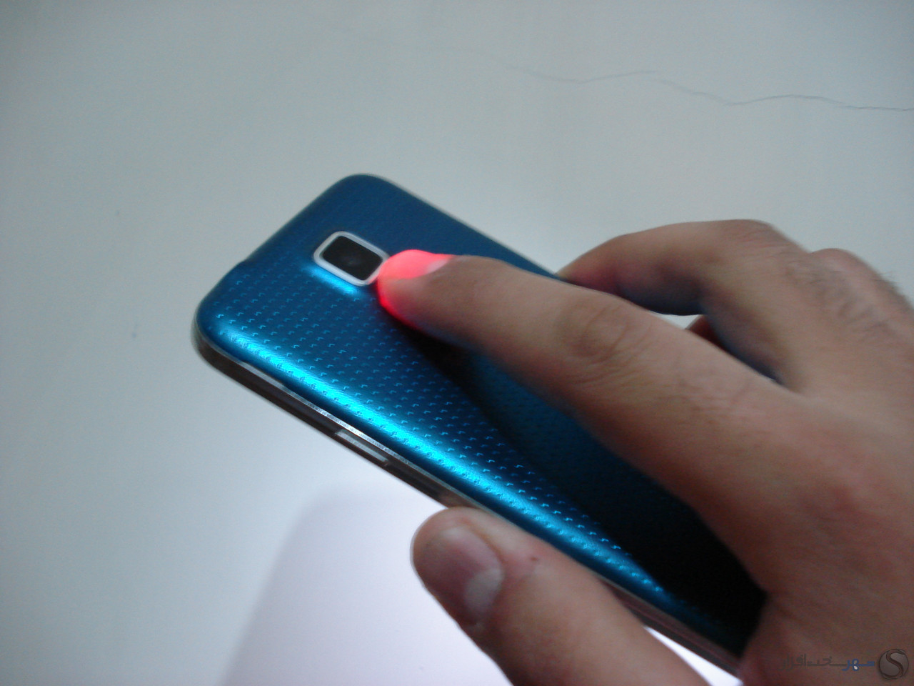 به یکی از مهمترین بخش های گلکسی اس 5 یعنی سنسور اثر انگشت آن می رسیم. این سنسور همانند آیفون 5اس در زیر دکمه هوم تعبیه شده است و برای استفاده و کار با آن لازم است انگشت خود را بر روی دکمه هوم بکشید. بر اساس بررسی هایی که انجام دادیم میزان حساسیت این سنسور تا حدودی نسبت به آیفون 5اس کمتر بوده و کار کردن با آن نیاز به کمی تمرین و عادت کردن دارد. برای سنسور اثر انگشت می توانید تا 3 انگشت یا یک انگشت در 3 جهت را معرفی کنید، بر خلاف سنسور آیفون در گلکسی اس 5 هر انگشتی که به دستگاه معرفی شود باید در همان جهتی که معرفی شده استفاده شود و کمی جابجایی باعث اشتباه سنسور در تشخیص الگو ها می گردد. همچنین به جهت تشخیص بهتر الگوی انگشت سطح روی دکمه هوم بهتر است عاری از چربی و لکه باشد در غیر اینصورت مجبور هستید چندین بار انگشت خود را بر روی سنسور بکشید.