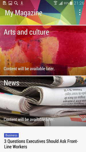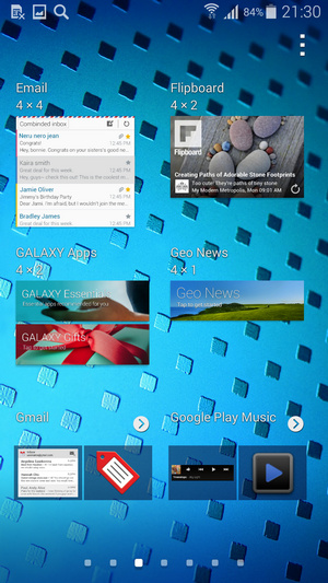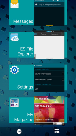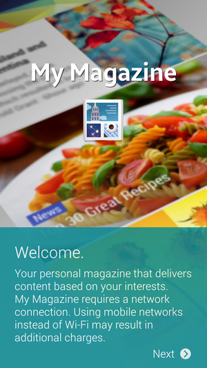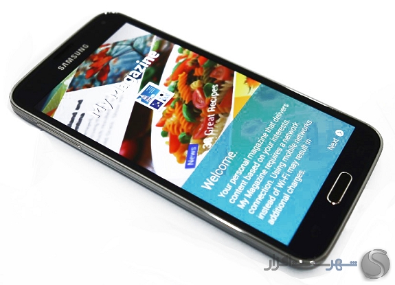 اولین قسمتی که قصد بررسی آن را داریم صفحه هوم اسکرین، لاک اسکرین و نوتیفیکیشن است. صفحه هوم اسکرین سامسونگ در گلکسی اس 5 و رابط کاربری تاچ ویز تغییراتی داشته است. همانطور که مشاهده می کنید تعدادی ویجت پیش فرض بر روی این پوسته نصب شده است و در وسط صفحه نشانگر صفحه هوم و صفحه My Magazine قرار دارد که به عبارتی نسخه جمع و جور اپلیکیشن خبری Flipboard است.