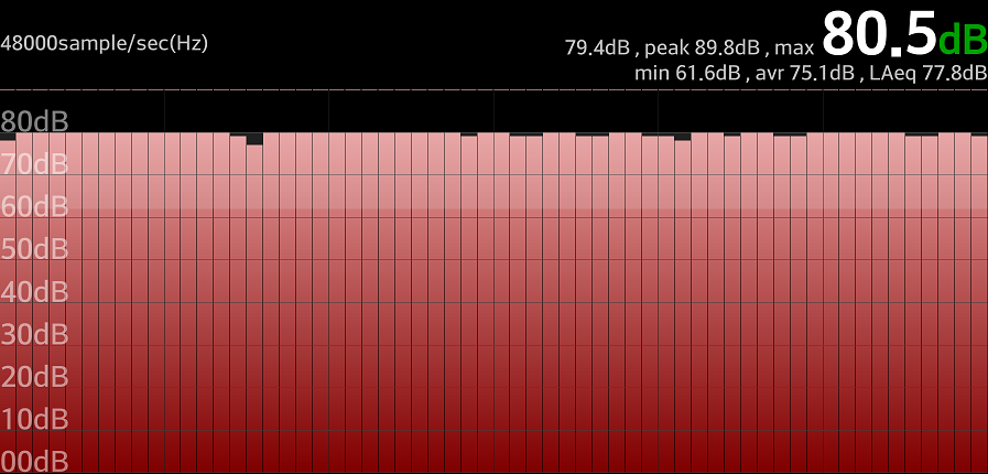 بخش بعدی این قسمت به تست صدای اسپیکر گلکسی اس 5 مربوط می شود، در تست ما گلکسی اس 5 توانست در حداکثر صدای تولیدی در فاصله 20 سانتیمنتری بلندی صدای 80.5 دسی بل داشته باشد. قابل ذکر است که ما برای این تست از یک قطعه موزیک استاندارد استفاده کردیم و نتایج ممکن است برای صدای زنگ تلفن و دیگر موارد متفاوت با این مقدار باشد.