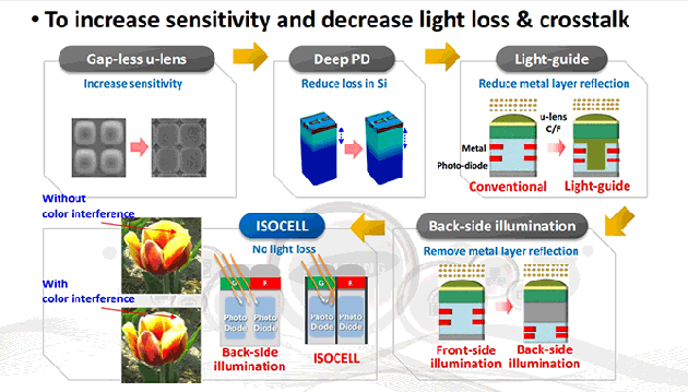 ایزوسل در واقع با ایزوله کردن پیکسل ها توسط یک لایه فیزیکی به دور آنها از تداخل نوری بین پیکسل ها اجتناب می کند. این لایه فیزیکی که نقش یک حصار را دور پیکسل ها بازی می کند باعث می شود تا نور انعکاسی روی پیکسل های مجاور نداشته باشد و دقیقاً در پیکسل اصلی به دام بیفتد. ایزوسل بطور خلاصه باعث افزایش کیفیت رنگ و میزان جذب صحیح نور در عکسها نسبت به سنسورهای مشابه می شود و این برگ برنده دوربین گلکسی اس 5 می باشد.
