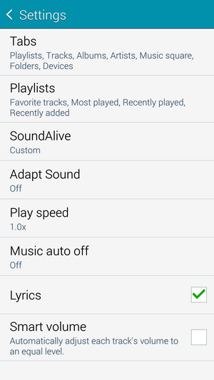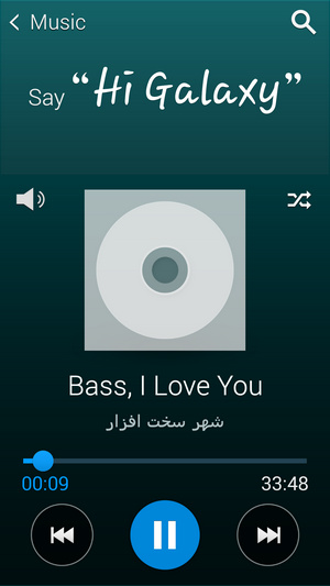 موزیک پلیر پیش فرض استفاده شده در گلکسی اس 5 قابلیت های بسیار خوبی دارد و از فرمت های بسیاری همچون FLAC پشتیبانی می کند. نمایش لیست آهنگ ها در دسته بندی های مختلف و بر اساس تگ های موجود بر روی فایل ها صورت می پذیرد. بر روی صفحه اصلی پلیر می توانید Album Art و دیگر مشخصات مربوط به فایل مورد نظر را مشاهده کنید همچنین در بخش تنظیمات طیف وسیعی از قابلیت ها و امکانات برای غنی تر کردن صدا وجود دارد.