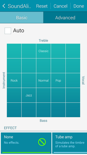 تنظیم دلخواه اکوالایزر با نام SoundAlive در دو نوع Basic و Advanced صورت می پذیرد و کاربر امکان تنظیم 7 باند فرکانسی مختلف را در حالت پیشرفته خواهد داشت. در حالت پایه بر اساس نمودار مربعی پیش فرض می توانید به صدای دلخواه خود دست پیدا کنید.