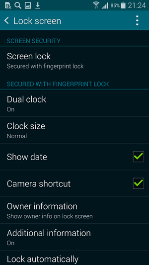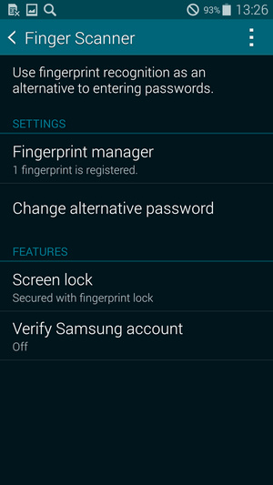 سامسونگ در کنار الگو و سنسور اثر انگشت برای مواقعی که دستگاه قادر به تشخیص آن نیست امکان قرار دادن یک رمز بازیابی قرار داده است و اگر به دفعات الگو را اشتباه وارد کنید می توانید با وارد کردن این رمز قفل دستگاه را باز کنید. معرفی کردن انگشتان هم به دستگاه کاری بسیار ساده است. در 8 مرحله انگشت خود را بر روی دکمه هوم و در یک جهت ثابت بکشید تا دستگاه به خوبی الگو را شناسایی کرده و تلفن را جهت استفاده از آن آماده کند.
