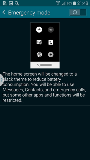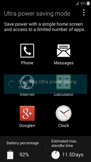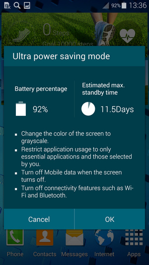 قابلیت Ultra Power Saving که برای اولین بار توسط سامسونگ در گلکسی اس 5 معرفی شده است یک قابلیت بسیار ویژه و مفید است. با کمک این حالت تلفن شما مدت زمان بسیار بیشتری را با باتری کم دوام می آورد و فرصت بیشتری را در اختیار شما قرار خواهد داد. این حالت زمانی که فعال می شود تلفن را به وضعیت سیاه و سفید می برد و بسیاری از قابلیت های غیر ضروری را غیر فعال می کند و تلفن تنها می تواند به برخی منابع از پیش تعیین شده نظیر برقراری تماس تلفنی و ارسال SMS و مرورگر وب دسترسی داشته باشد. طبق گفته های رسمی و بررسی شهر سخت افزار گلکسی اس 5 با تنها 10% شارژ باقیمانده در این حالت می تواند تا 24 تلفن را در وضعیت استندبای یا آماده به کار روشن نگه دارد.