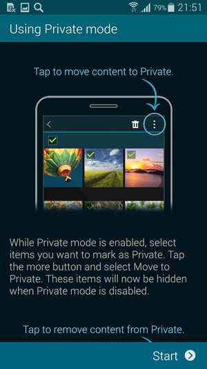 یکی دیگر از قابلیت های جدید در گلکسی اس 5 حالت Private Mode است که به کمک آن می توانید برخی از اطلاعات شخصی را از دسترس دیگران مخفی نگه دارید و تنها خود به آنها دسترسی داشته باشید. Toolbox نیز یک میانبر سریع است که می توانید در آن تعدادی اپلیکیشن را تنظیم نموده و با کلیک کردن بر روی آیکون آن در هر جای صفحه به آن اپلیکیشن ها دسترسی داشته باشید. قابلیت کارکردن با یک دست نیز با توجه به صفحه بزرگ 5.1 اینچی فراموش نشده است و می توانید با کمک آن صفحه را کوچک تر نموده و برای کار کردن با یک دست بهینه سازید.