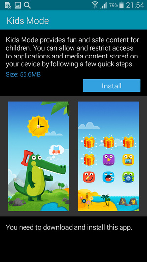 Kids Mode یکی دیگر از قابلیت های گلکسی اس 5 است که بطور انحصاری برای در دسترس قرار دادن گوشی به کودکان طراحی شده است. هرچند لازم است قبل از دسترسی به آن این اپلیکیشن را با حجم 56 مگابایت دانلود کنید اما با فعال کردن آن یکسری قابلیت های پیش فرض در فرم ظاهری کودکانه برای استفاده ایجاد می شود. Car Mode هم با توجه به اسم آن برای استفاده در ماشین طراحی و توسعه داده شده است. به کمک این قابلیت چهار ویژگی برقراری تماس، ارسال SMS، مسیریابی و پخش موزیک از طریق دستورات صوتی قابل انجام است و راننده نیازی ندارد که به صفحه گوشی نگاه کند یا چیزی را لمس نماید.