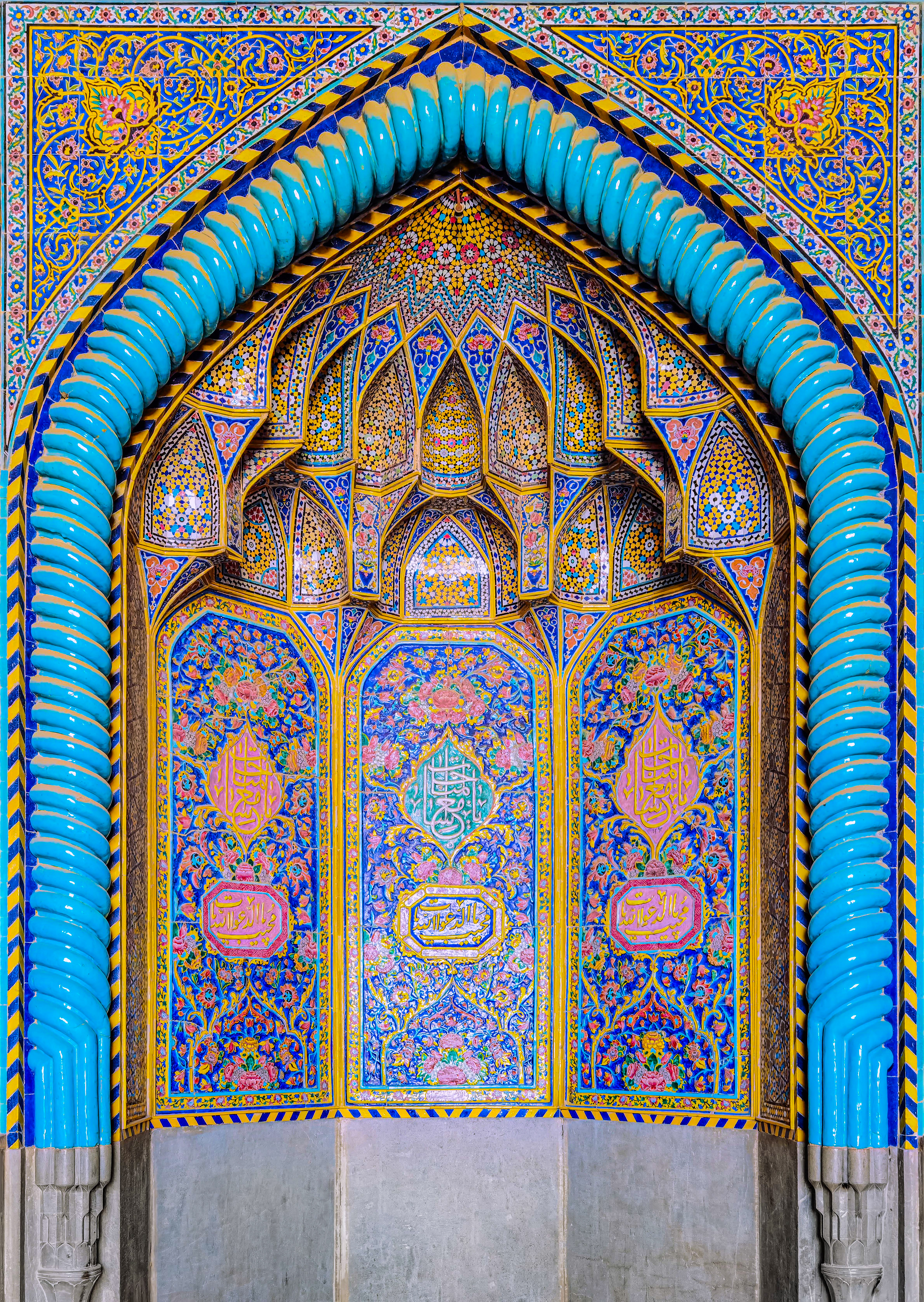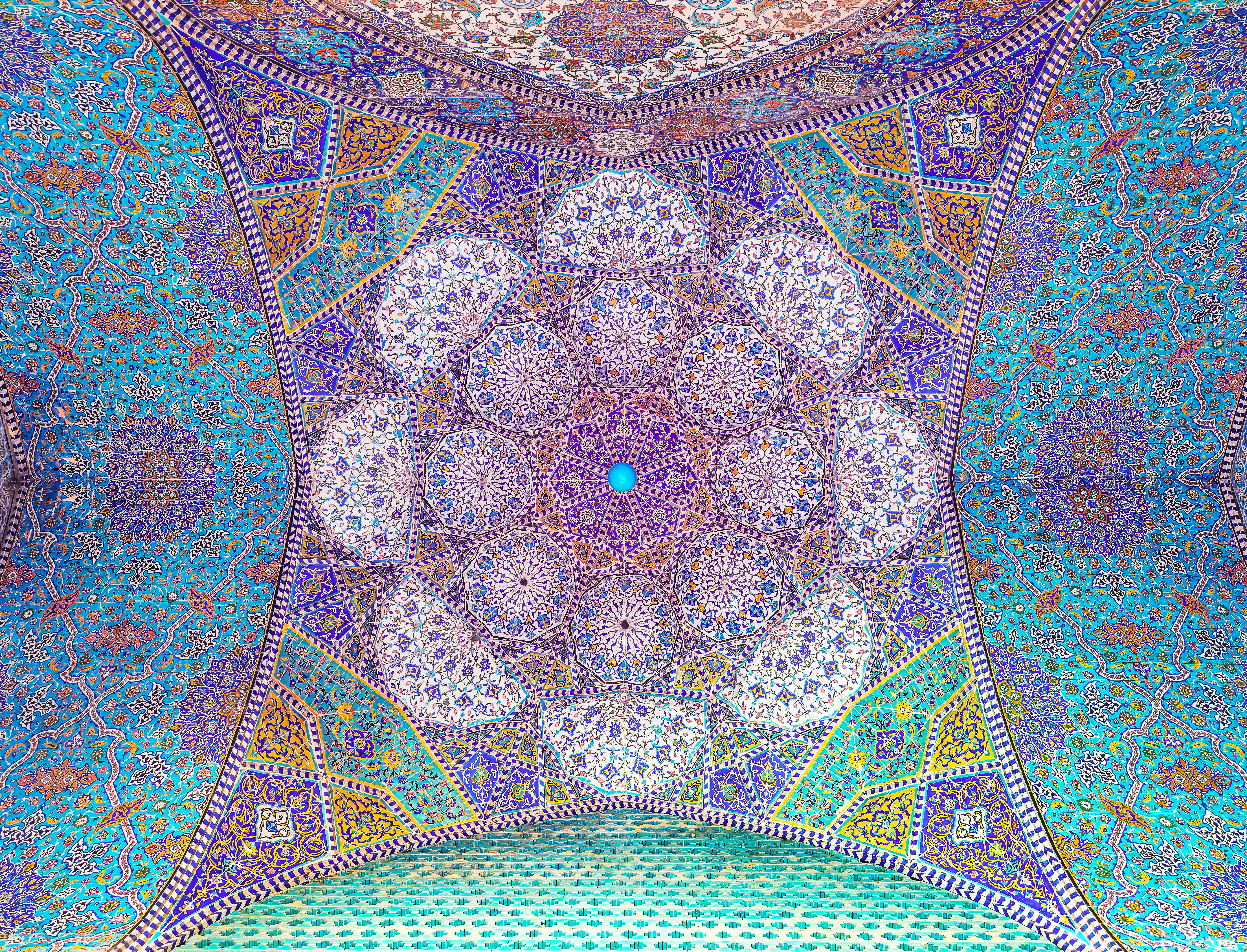 تصویر فوق نمایی به ثبت رسیده از محراب مسجد است. تنها چالشی که در هنگام ثبت این تصویر وجود داشت، عدم امکان دستیابی به ارتفاع مناسب برای عکاسی از این محراب بود. در واقع حتی بلندترین سه پایهها نیز برای ثبت چنین تصویری به اندازه کافی بلند نیستند و تصویری که مشاهده میکنید بخشی کوچک از تصویری با فاصله دورتر است که تلاش شده پرسکتیو آن اصلاح شود که این مهم از طریق نرمافزار لایتروم روی گوشی به راحتی قابل انجام هست.