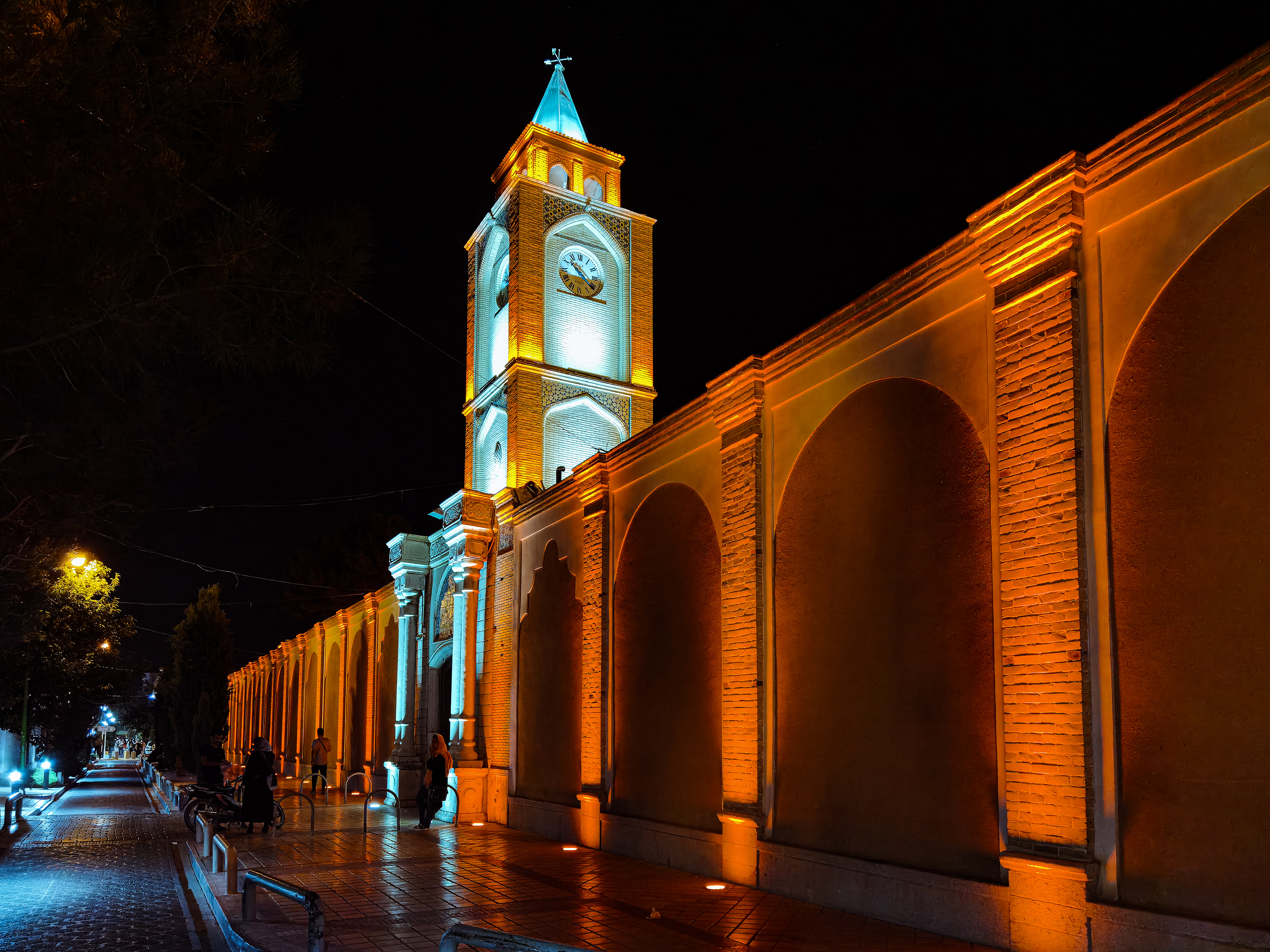به عنوان بنای تاریخی بعدی سراغ کلیسای وانک رفتیم. کلیسای وانک در یک محله تاریخی و تا حدودی شبیه به محلههای اروپایی به نام «جلفا» قرار داره و از آنجایی که محوطه اطراف کلیسا به خوبی نورپردازی شده بود، حتی بدون استفاده از نایت مود هم توانستیم تصاویر مطلوبی را ثبت کنیم. به همین خاطر تصمیم گرفتیم تا با دیگر در این بنا نیز از حالت High-Res و پتانسیل بالای آن برای ثبت جزئیات کمک بگیریم. نتیجه تصویر فوق شد که میتوان پی 40 پرو را به خاطر ثبت آن تحسین کرد.